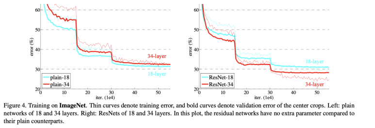On the left side of the figure, in the plain network, deeper layers result in higher error rates. However, in ResNet, deeper networks actually achieve lower errors, demonstrating its effectiveness. 🚀