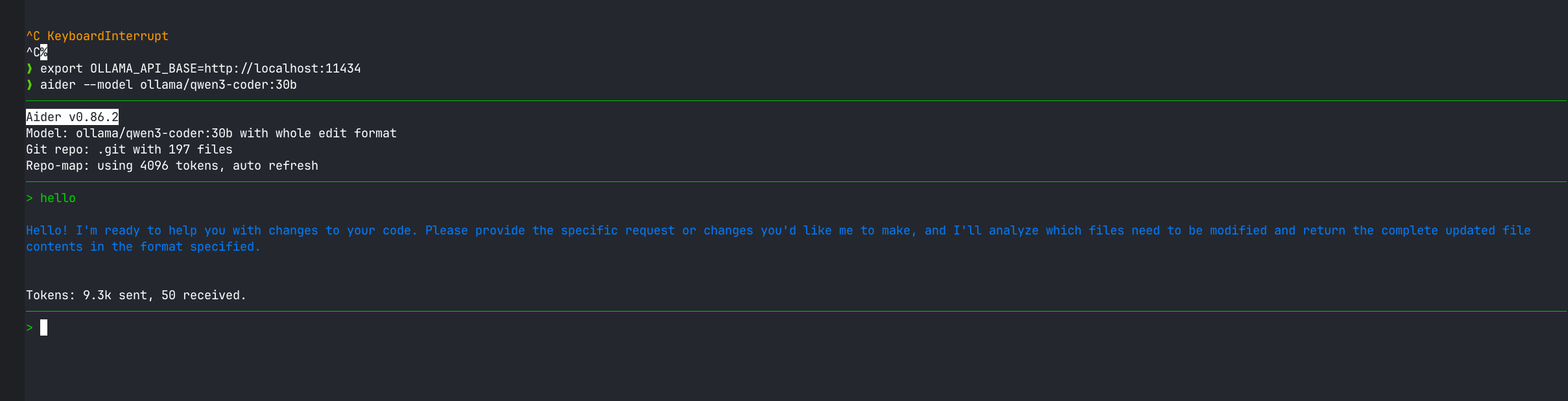 - Model switching: Complex tasks → `qwen3-coder:30b`, quick tasks → `qwen2.5-coder:7b`